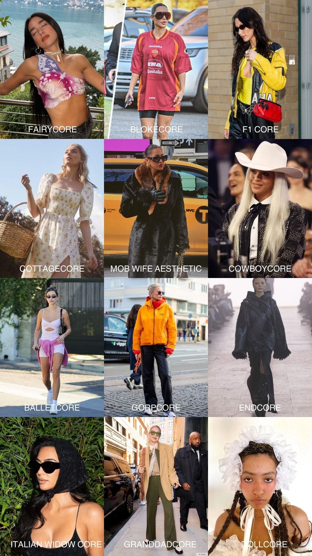 2024 was het jaar van de core (micro)trend: het aanmeten van een complete look binnen een specifieke esthetiek. Dat is niet zo gek in een onzekere, overprikkelende wereld als deze. Een duidelijke stijl, een hokje, creëert houvast en bevestiging. Het geeft rust om te kunnen zeggen: dit ben ik en dit is mijn wereld. Maar ironisch genoeg verandert die ‘ik’ elke paar weken. Het zoeken naar een nieuwe identiteit via kleding biedt ons misschien tijdelijk escapisme, maar ik geloof dat het uiteindelijk bijdraagt aan dezelfde onzekerheid waar we juist van proberen te ontsnappen. Ik zie dat core trends steeds vluchtiger worden. Een kleine greep uit wat ik vorig jaar tegenkwam: