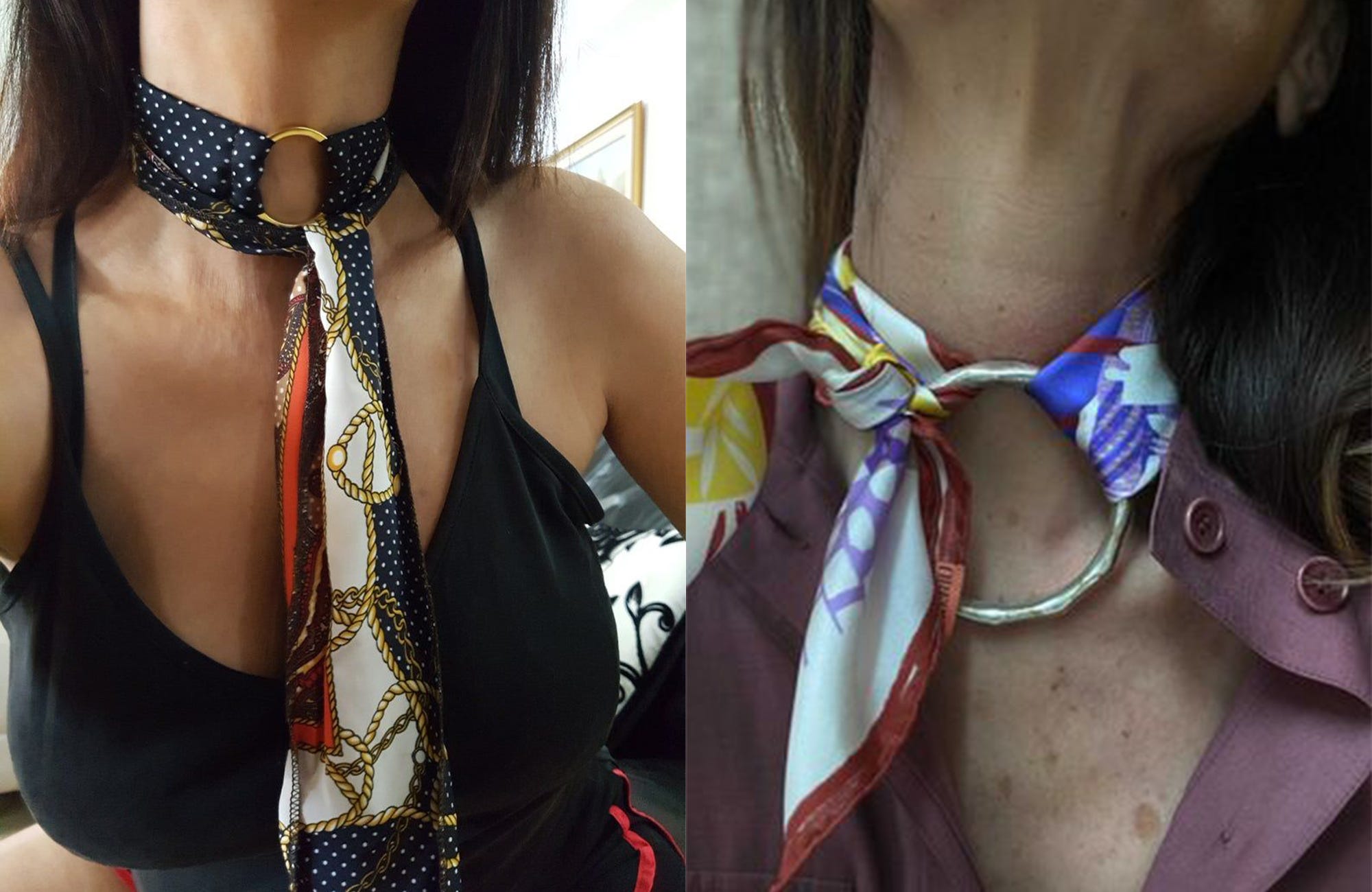 Van haar kreeg ik de tip om wat vaker één item te pakken, rond te kijken op Pinterest en nieuwe mogelijkheden uit te proberen. Dat deed ik eerder al met blouses, mijn zilveren rok en gekleurde panty’s (die laatste was niet zo geslaagd, ik heb ze daarna nooit meer gedragen). Deze keer dook ik in de meest letterlijke lap stof: het sjaaltje.