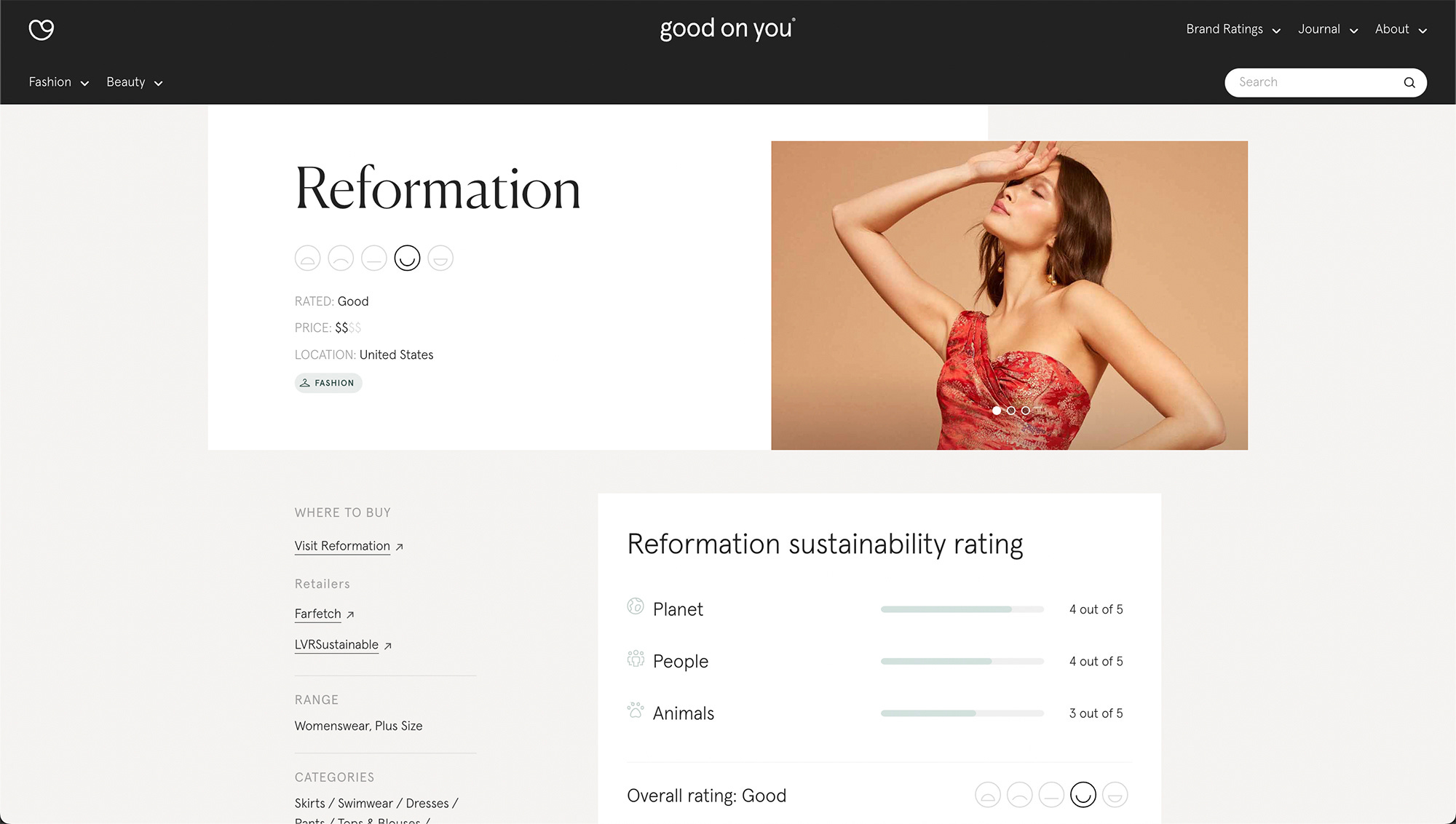 Wat hierbij goed is om te weten: Good On You beoordeelt merken op basis van publiekelijk beschikbare informatie, zoals rapportages, certificeringen en duurzaamheidsdata die merken zelf delen. Hun analyses kijken naar honderden datapunten over arbeidsomstandigheden, milieu-impact en dierenwelzijn. Uiteindelijk krijgen merken een score op drie gebieden: people, planet en animals.